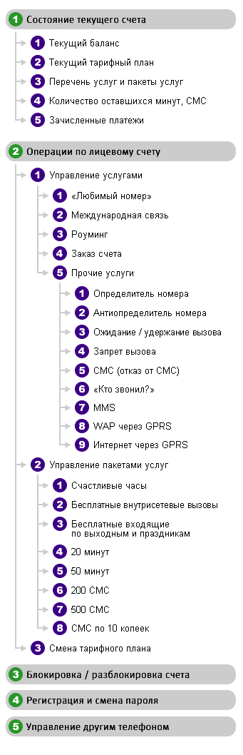 Позвонив на короткий сервисный номер 0505 с вашего мобильного телефона, вы получаете доступ к автоматическому голосовому меню для управления услугами счета. Смотрите схему автоматического голосового меню.