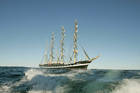 17.30 Учебный аврал «Все на верх». Подъём на мачты. Поборов страх мы поднялись на самый верх. ВЫШЕ НАС ТОЛЬКО ОБЛАКА, Высота бром брам рея 45 метров. Учились укатывать паруса. Вышло, на первый раз, неплохо. Ветер стих. Паруса убрали. Остались только косые паруса.