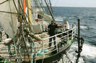 7.00 Подъём. Прошли за 12 часов около 100 миль. Ветер усилился до 9 -10 м/с. Палубу заливает брызгами. Настоящая морская погода.